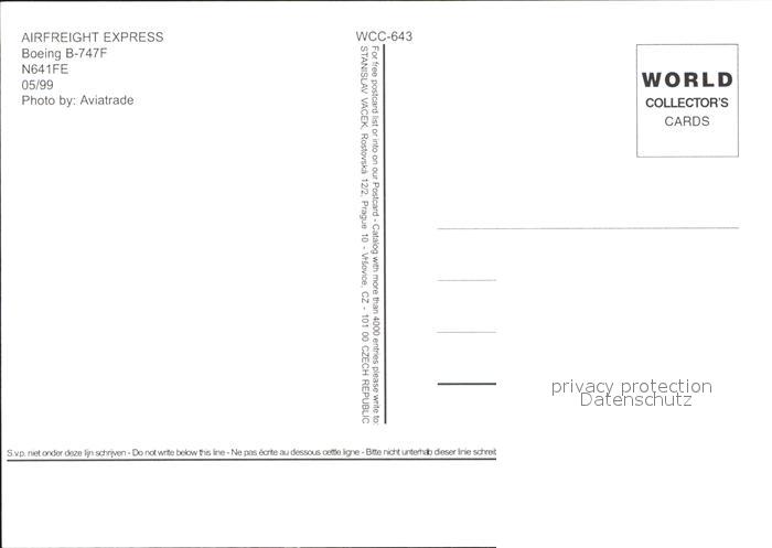 Flugzeuge Zivil Airfreight Express Boeing 747F N641FE postalisch nicht gelaufen Erhaltung siehe scans