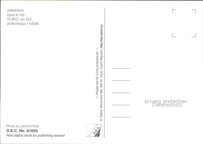 Flugzeuge Zivil Airkenya Dash 8-100 5Y-BTZ c/n 203 postalisch nicht gelaufen Erhaltung siehe scans