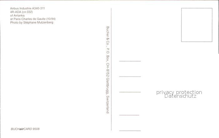 Flugzeuge Zivil Airlanka A340-311 4R-ADA cn 032 postalisch nicht gelaufen Erhaltung siehe scans
