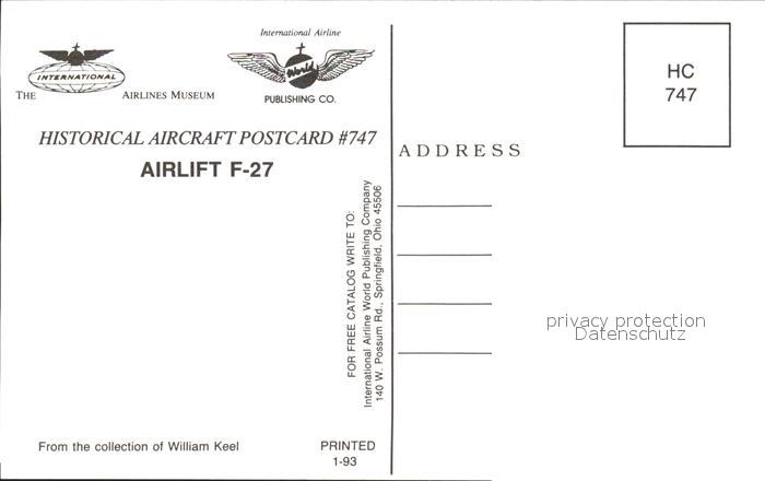 Flugzeuge Zivil Airlift F-27 N277RD postalisch nicht gelaufen Erhaltung siehe scans