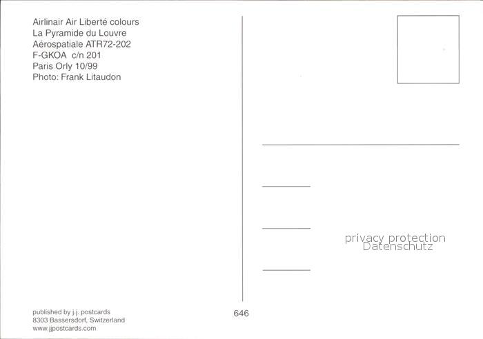 Flugzeuge Zivil Airlinair Air Liberte colours Pyramide du Louvre Aerospatiale ATR72-202 F-GKOA c/n 201 postalisch nicht gelaufen Erhaltung siehe scans