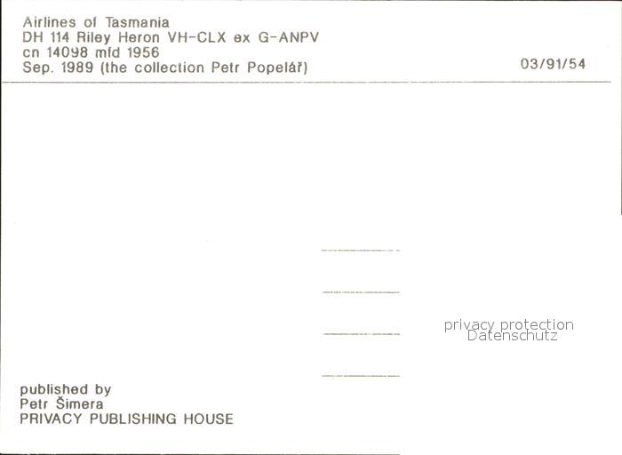 Flugzeuge Zivil Airlines of Tasmania DH-114 Riley Heron VH-CLX G-ANPV cn 14098 postalisch nicht gelaufen Erhaltung siehe scans