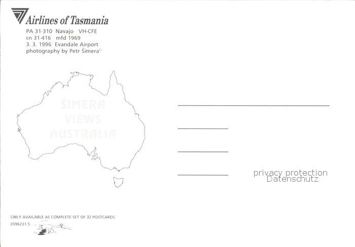 Flugzeuge Zivil Airlines of Tasmania PA-31-310 Navajo VH-CFE cn 31-416 postalisch nicht gelaufen Erhaltung siehe scans