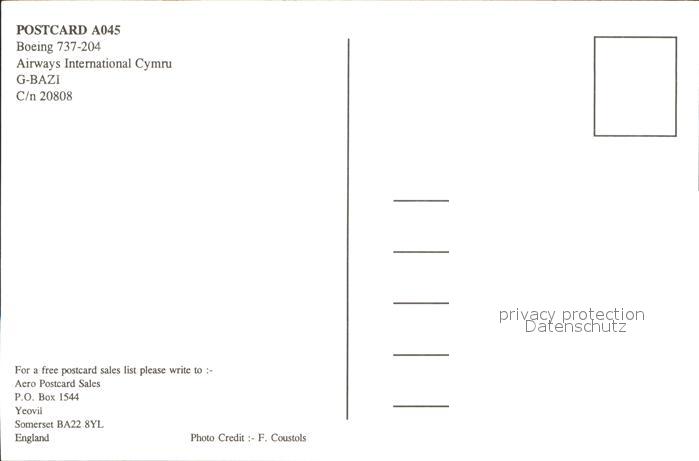 Flugzeuge Zivil Airways Internation Cymru Boeing 737-204 G-BAZI c/n 20808 postalisch nicht gelaufen Erhaltung siehe scans