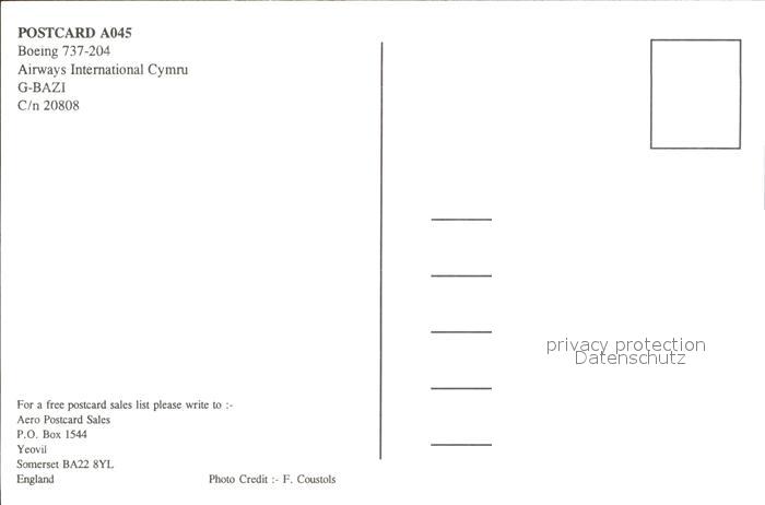 Flugzeuge Zivil Airways International A045 Boeing 737-204 G-BAZI C/n 20808 postalisch nicht gelaufen Erhaltung siehe scans