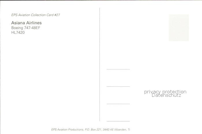 Flugzeuge Zivil Aisana Airlines Boeing 747-48EF HL 7420 postalisch nicht gelaufen Erhaltung siehe scans