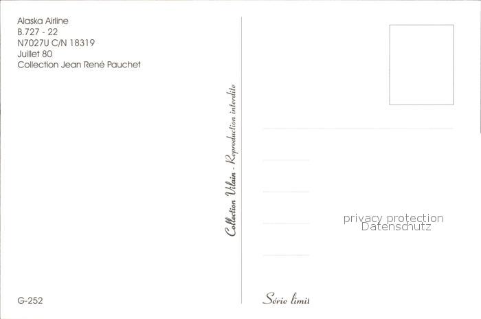 Flugzeuge Zivil Alaska Airline B-727-22 N7027U C/N 18319 postalisch nicht gelaufen Erhaltung siehe scans