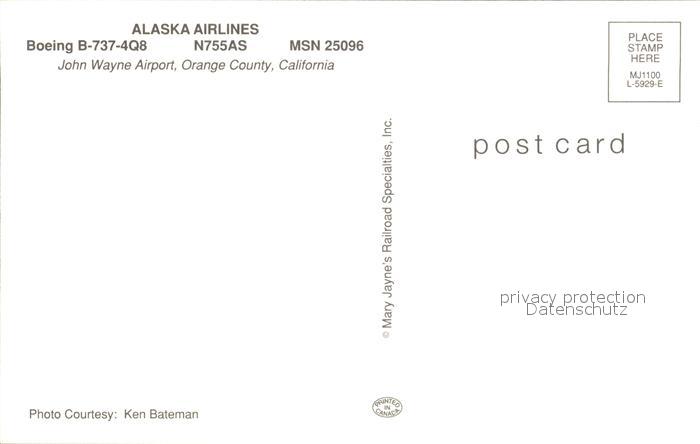 Flugzeuge Zivil Alaska Airlines Boeing 737-4Q8 N755AS MSN 25096 postalisch nicht gelaufen Erhaltung siehe scans