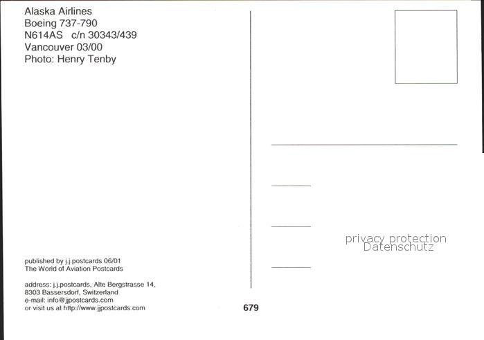 Flugzeuge Zivil Alaska Airlines Boeing 737-790 N614AS c/n 30343/439 postalisch nicht gelaufen Erhaltung siehe scans