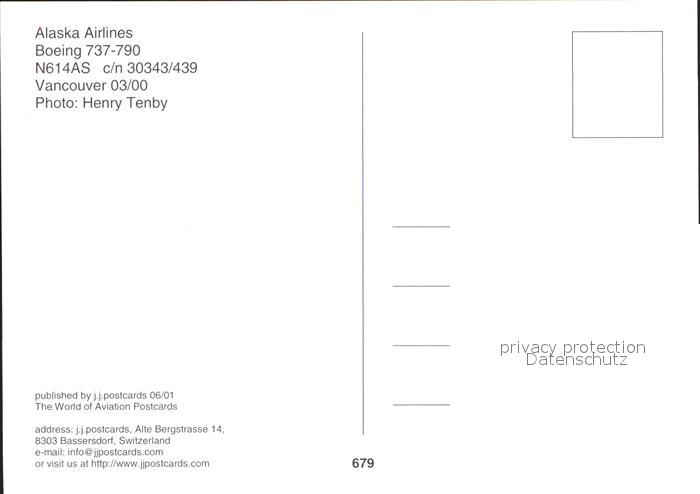 Flugzeuge Zivil Alaska Airlines Boeing 737-790 N614AS c/n 30343/439 postalisch nicht gelaufen Erhaltung siehe scans