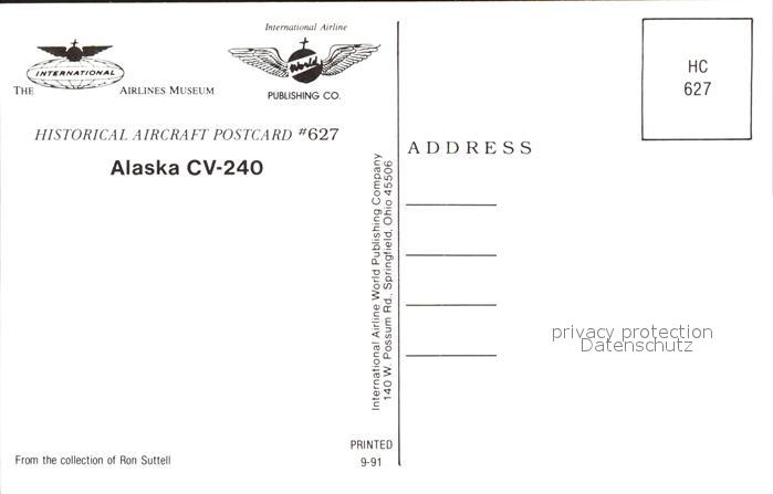 Flugzeuge Zivil Alaska CV-240 N196N postalisch nicht gelaufen Erhaltung siehe scans
