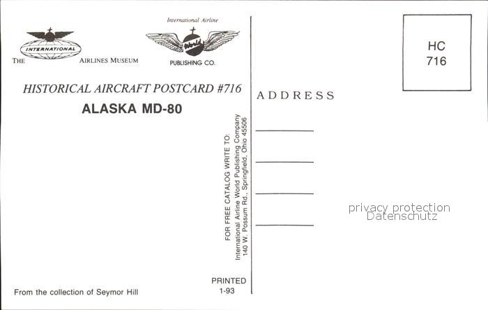 Flugzeuge Zivil Alaska MD-80 N779JA postalisch nicht gelaufen Erhaltung siehe scans