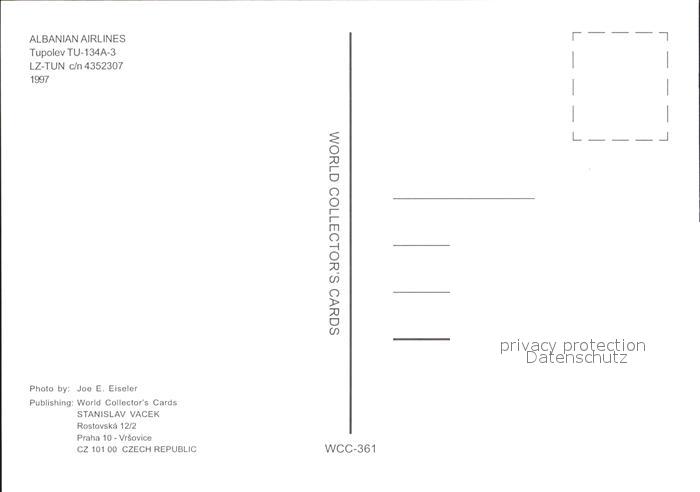 Flugzeuge Zivil Albanian Airlines Tupolev TU-134A-3 LZ-TUN c/n 4352307 postalisch nicht gelaufen Erhaltung siehe scans