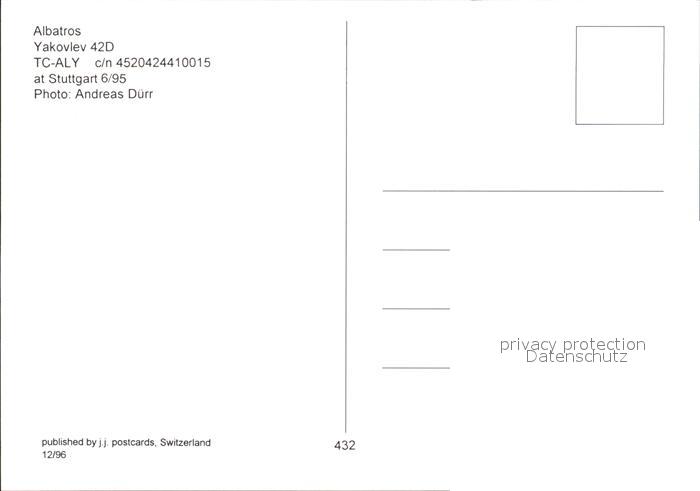 Flugzeuge Zivil Albatros Yakovlev 42D TC-ALY postalisch nicht gelaufen Erhaltung siehe scans