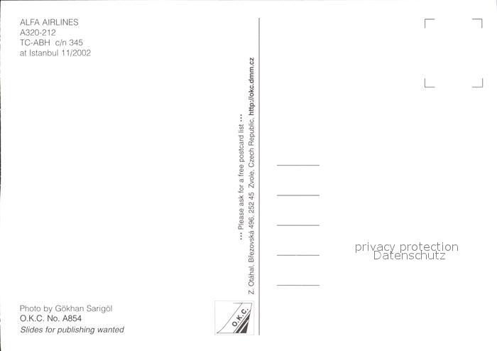 Flugzeuge Zivil Alfa Airlines A320-212 TC-ABH c/n 345 postalisch nicht gelaufen Erhaltung siehe scans