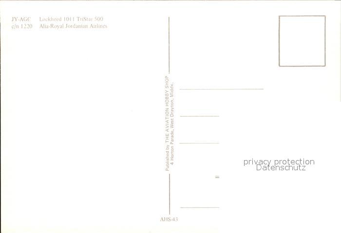 Flugzeuge Zivil Alia-Royal Jordanian Airlines Lockheed 1011 TriStar 500 JY-AGC postalisch nicht gelaufen Erhaltung siehe scans