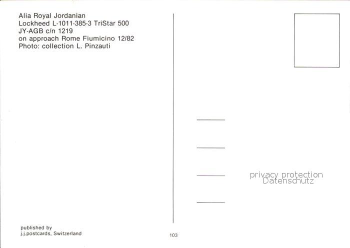 Flugzeuge Zivil Alia Royal Jordanian Lockheed L-1011-385-3 TriStar 500 JY-AGB c/n 1219 postalisch nicht gelaufen