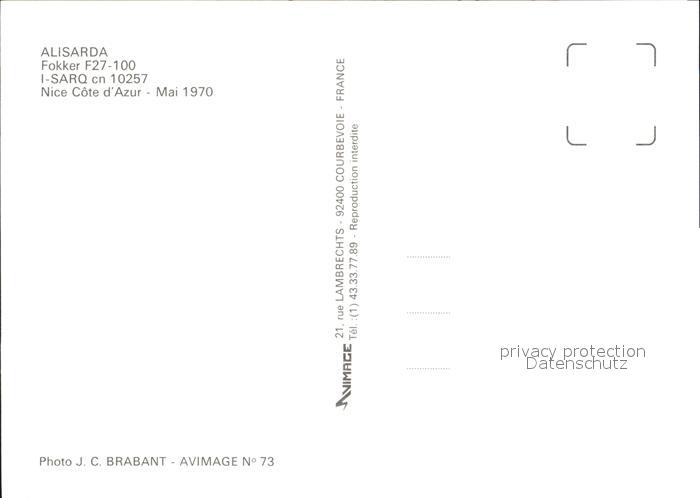 Flugzeuge Zivil Alisarda Fokker F27-100 I-SARQ cn 10257 postalisch nicht gelaufen Erhaltung siehe scans