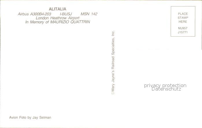Flugzeuge Zivil Alitalia Airbus A300B4-203 I-BUSJ MSN 142 postalisch nicht gelaufen Erhaltung siehe scans