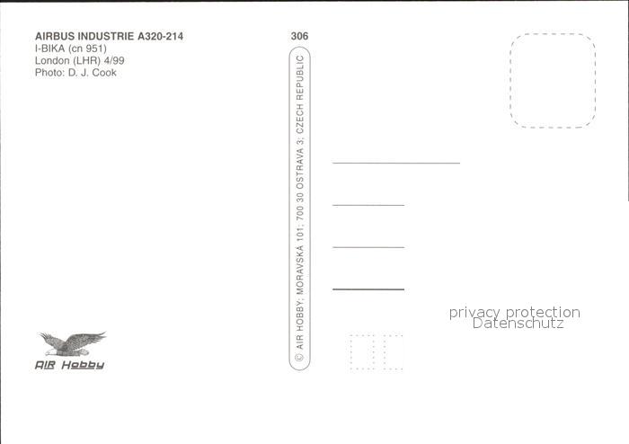 Flugzeuge Zivil Alitalia Airbus Industrie A320-214 I-BIKA cn 951 postalisch nicht gelaufen Erhaltung siehe scans