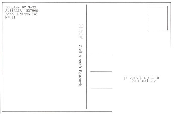 Flugzeuge Zivil Alitalia Douglas DC-9-32 N2786S postalisch nicht gelaufen Erhaltung siehe scans