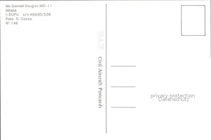 Flugzeuge Zivil Alitalia McDonnell Douglas MD-11 I-DUPU c/n 48430/508 postalisch nicht gelaufen Erhaltung siehe scans