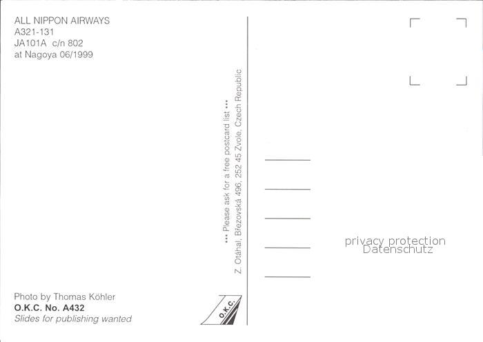 Flugzeuge Zivil All Nippon Airways A321-131 JA101A c/n 802 postalisch nicht gelaufen Erhaltung siehe scans