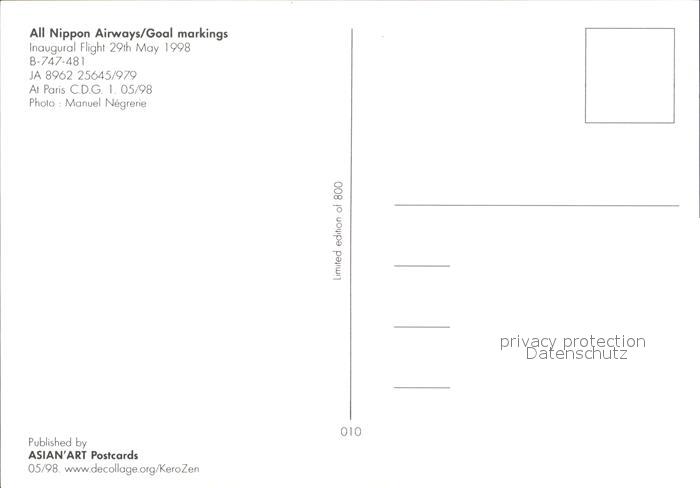 Flugzeuge Zivil All Nippon Airways B-747-481 JA8962 Inaugural flight postalisch nicht gelaufen Erhaltung siehe scans