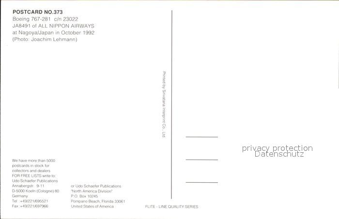 Flugzeuge Zivil All Nippon Airways Boeing 767-281 c/n 23022 JA8491 postalisch nicht gelaufen Erhaltung siehe scans