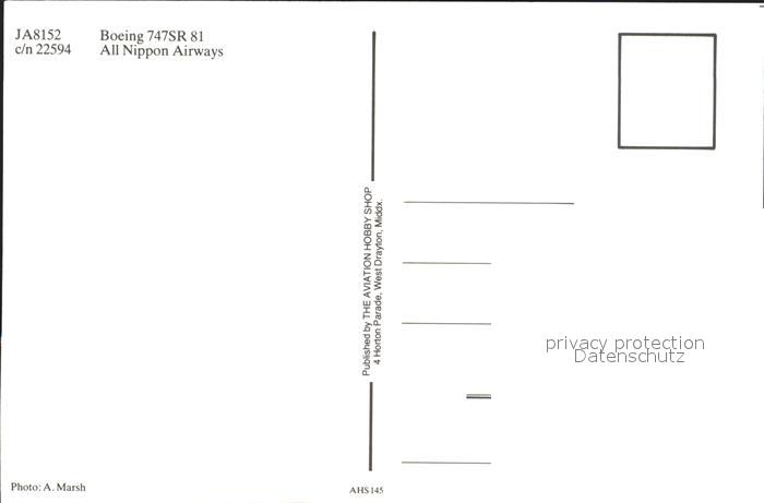Flugzeuge Zivil All Nippon Airways JA8152 Boeing 747SR81 c/n 22594 postalisch nicht gelaufen Erhaltung siehe scans