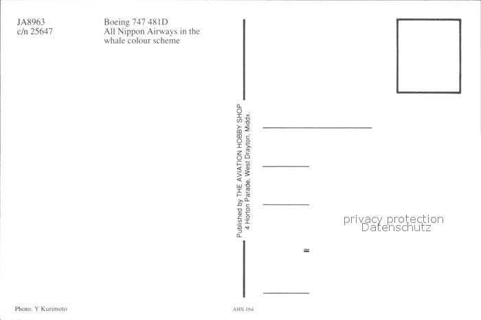 Flugzeuge Zivil All Nippon Airways Whale colours Boeing 747-481D JA8963 postalisch nicht gelaufen Erhaltung siehe scans