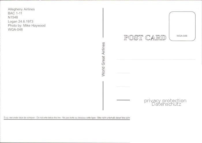 Flugzeuge Zivil Allegheny Airlines BAC 1-11 N1548 postalisch nicht gelaufen Erhaltung siehe scans