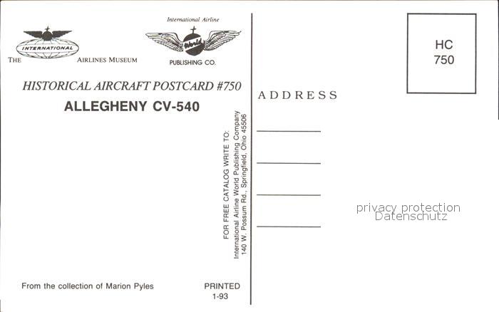 Flugzeuge Zivil Allegheny CV-540 postalisch nicht gelaufen Erhaltung siehe scans