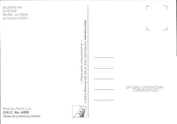 Flugzeuge Zivil Allegro Air B-727-232 XA-ABL c/n 20640 postalisch nicht gelaufen Erhaltung siehe scans