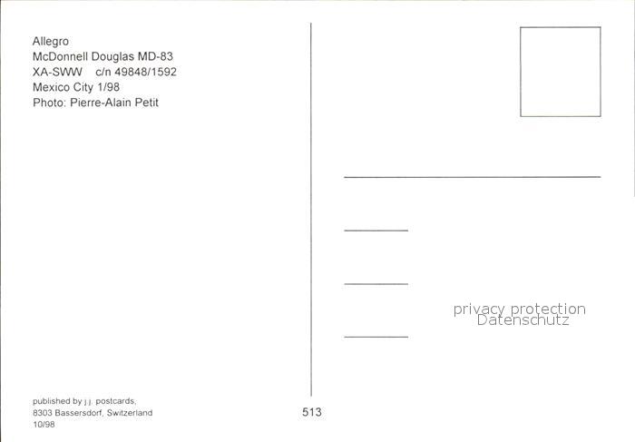 Flugzeuge Zivil Allegro McDonnell Douglas MD-83 XA-SWW c/n 49848/1592 postalisch nicht gelaufen Erhaltung siehe scans