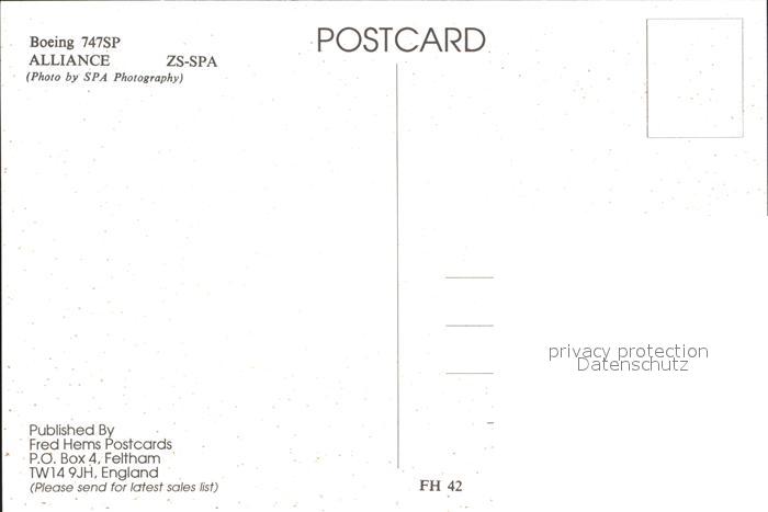Flugzeuge zivil Alliance Boeing 747SP ZS-SPA postalisch nicht gelaufen Erhaltung siehe scans