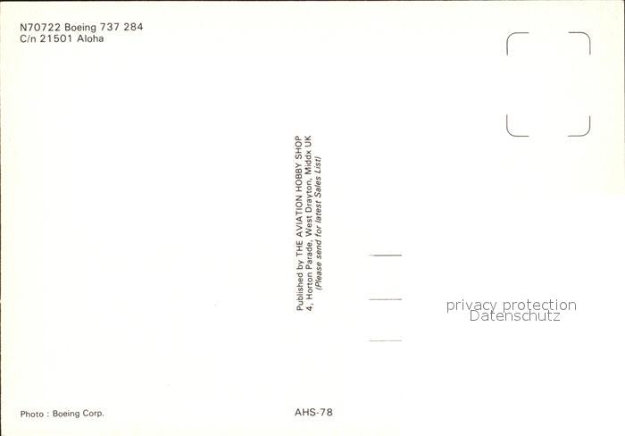 Flugzeuge Zivil Aloha Boeing 737-284 N70722 C/n 21501 postalisch nicht gelaufen Erhaltung siehe scans