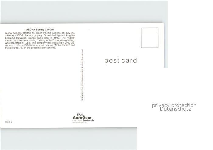 Flugzeuge Zivil Aloha Boeing 737-297 postalisch nicht gelaufen Erhaltung siehe scans