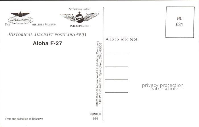 Flugzeuge Zivil Aloha F-27 postalisch nicht gelaufen Erhaltung siehe scans