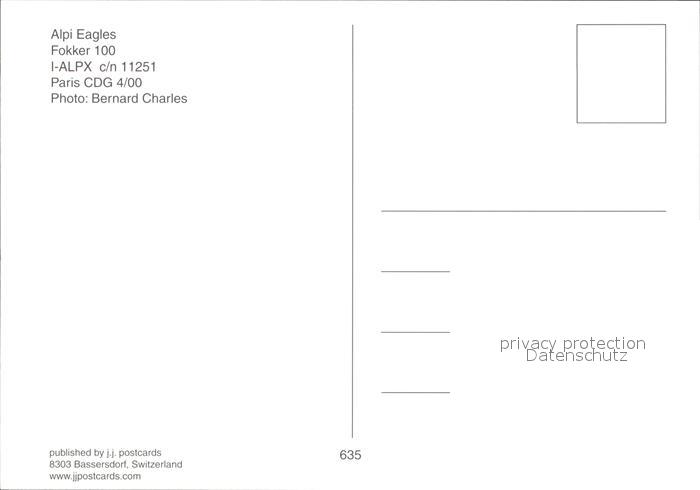 Flugzeuge Zivil Alpi Eagles Fokker 100 I-ALPX c/n 11251 postalisch nicht gelaufen Erhaltung siehe scans
