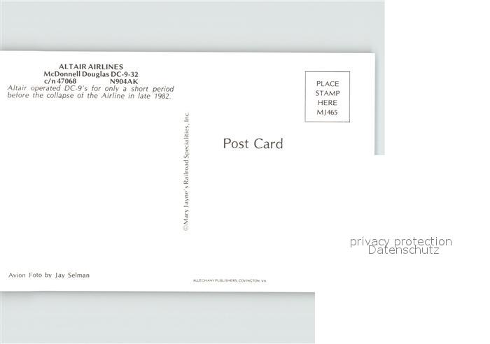 Flugzeuge Zivil Altair Airlines McDonnell Douglas DC-9-32 c/n 47068 N905AK postalisch nicht gelaufen Erhaltung siehe scans