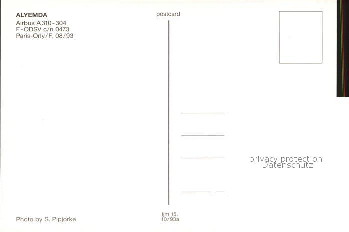 Flugzeuge Zivil Alyemda A310-304 F-ODSV c/n 0473 postalisch nicht gelaufen Erhaltung siehe scans