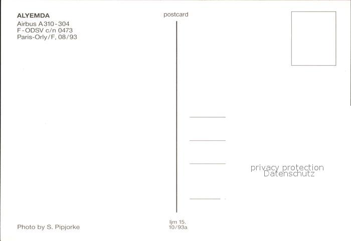 Flugzeuge Zivil Alyemda A310-304 F-ODSV c/n 0473 postalisch nicht gelaufen Erhaltung siehe scans