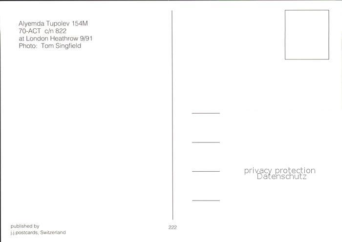 Flugzeuge Zivil Alyemda Tupolev 154M 70-ACT c/n 822 postalisch nicht gelaufen Erhaltung siehe scans