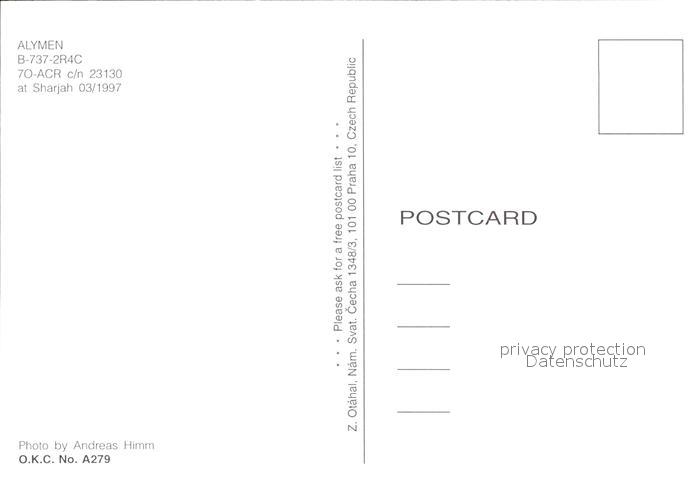 Flugzeuge Zivil Alyemen B-737-2R4C 7O-ACR c/n 23130 postalisch nicht gelaufen Erhaltung siehe scans