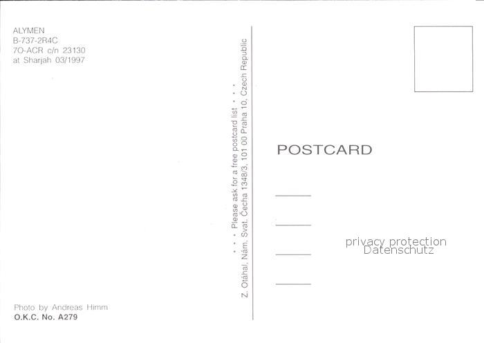 Flugzeuge Zivil Alymen B-737-2R4C 7O-ACR c/n 23130 postalisch nicht gelaufen Erhaltung siehe scans