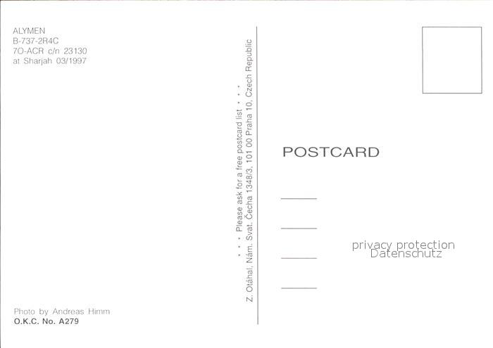 Flugzeuge Zivil Alymen B-737-2R4C 7O-ACR c/n 23130 postalisch nicht gelaufen Erhaltung siehe scans