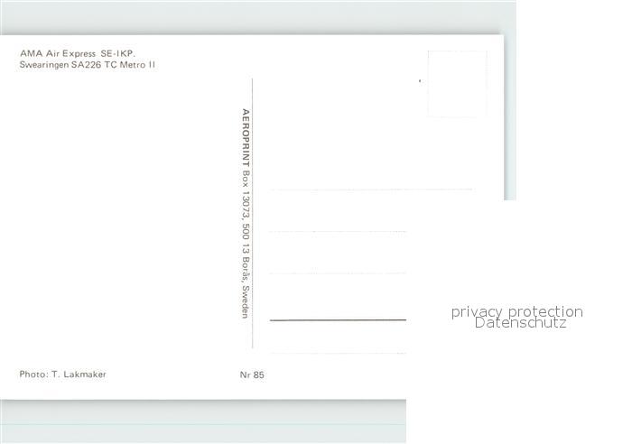 Flugzeuge Zivil AMA Air Express SE-IKP Swearingen SA226 TC Metro II postalisch nicht gelaufen Erhaltung siehe scans