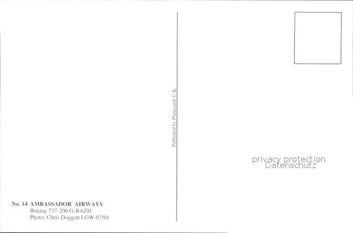 Flugzeuge Zivil Ambassador Boeing 737-200 G-BAZH postalisch nicht gelaufen Erhaltung siehe scans