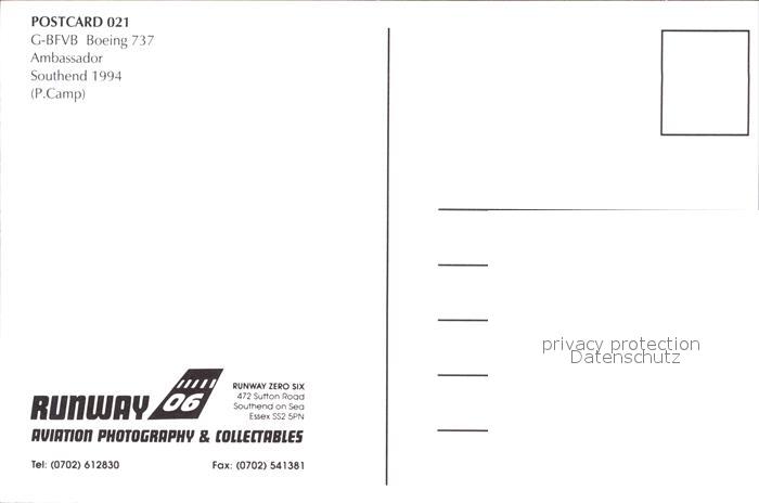 Flugzeuge zivil Ambassador G-BFVB Boeing 737 postalisch nicht gelaufen Erhaltung siehe scans